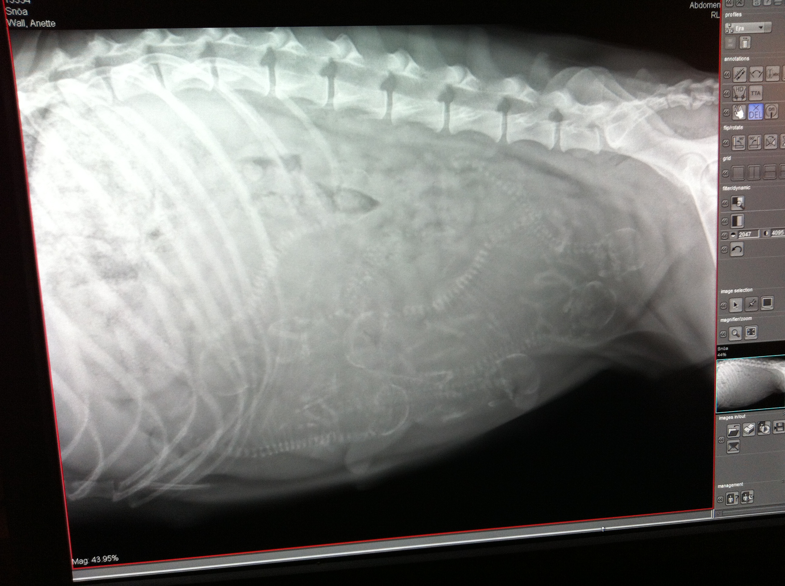 Valparna har nu fått sina stamtavlor, men än har inte alla tjejer har fått sitt namn, men snart så. Det blev en del bilåka förra veckan men den här veckan har helt enkelt inte funnits kraft, men jag ska ta tag i det så snart jag orkar. Valparna får vara ute i små grupper på gräsmattan så jag hinner fånga in dom utifall de hittar någon liiiten glugg där de kan smita ut från gården. Flera valpar ligger platt när de ser Iza så då kan vi säga att vi har stoppet inlärt på dom, och inkallningen fungerar bra då vissling betyder mat. Kom ihåg att det är bara hojta till om ni vill ha valpen sängvan också, det brukar vara det lättaste att lära dom. Nu de senaste två mornarna var det småtassar i vardagsrummet på upptäcktsfärd för den svarta hanen, han har kommit på hur man tar sig ur hagen. Alla valpar äter som de ska och jag blir lika förvånad varje gång då jag ökar mängden mat och allt tar slut-aptiten är det då inget fel på! Summar summarum: de växer och har de bra de små vita hårbollarna!